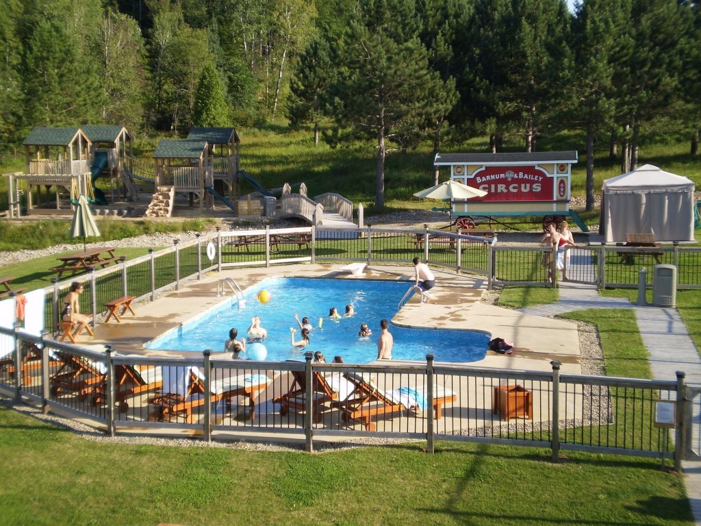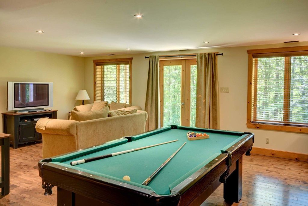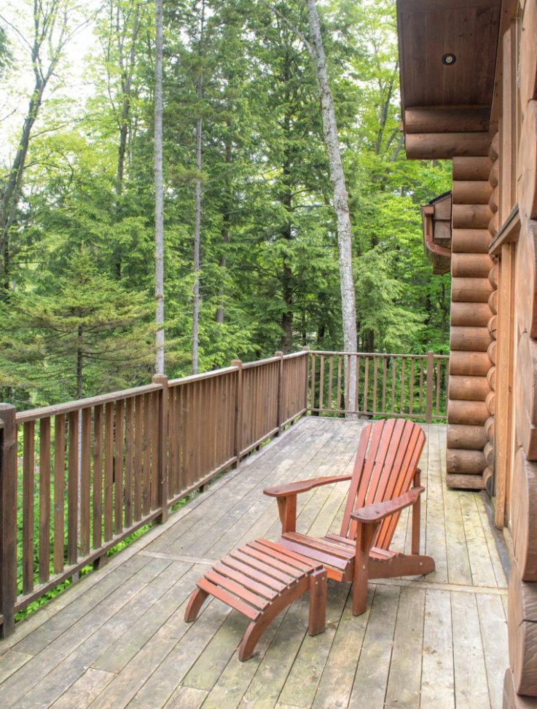 Blueberry Lake Resort offers you Chalet Nessrine, a 2,400 sq. ft., 3 story log home with 5 bedrooms and 3 bathrooms. The charming chalet features a pool table and private hot tub, wrap around deck with lounge chairs, wi-fi and BBQ. Residents and vacationers alike will enjoy warm summer breezes, the magnificent color of the fall palette, the spectacle of spring flowers, skiing in the winter at Tremblant the Eastern North America’s highest mountain peak.