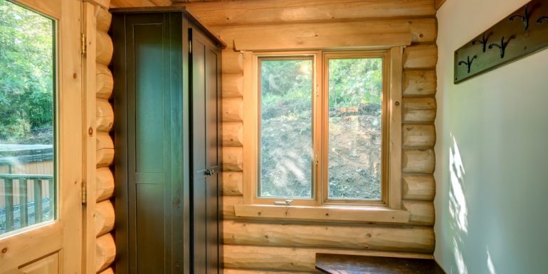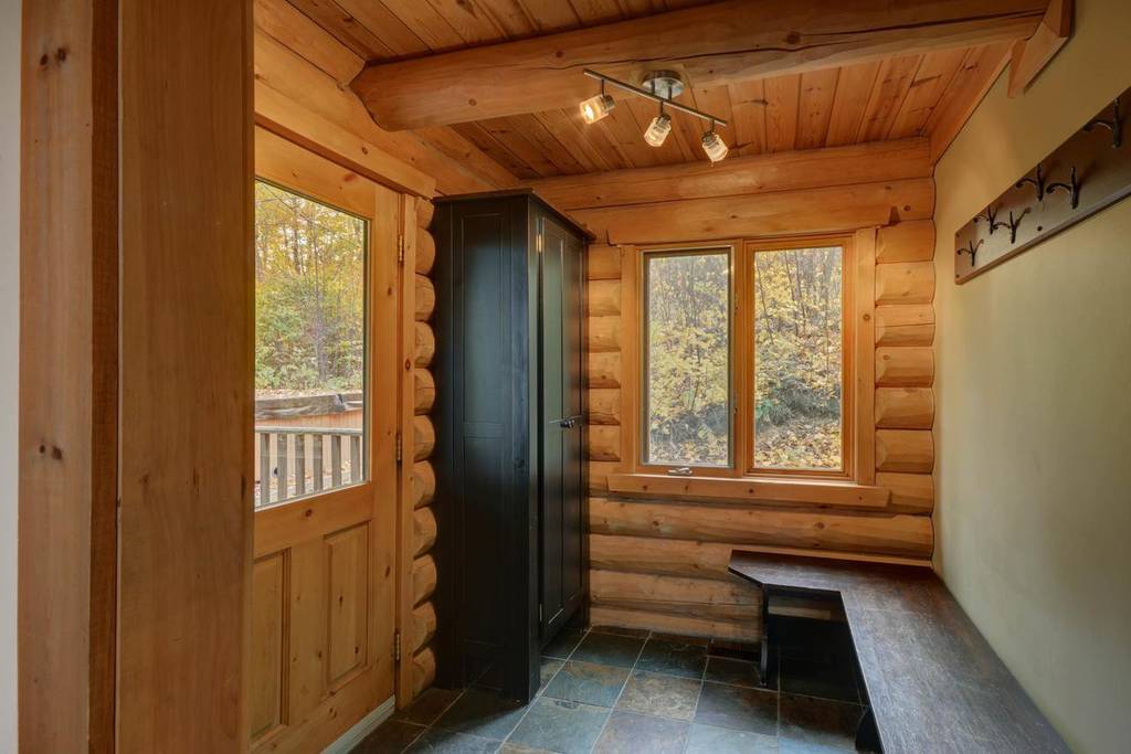 This beautifully landscaped cottage is a made of unique 2 floors round log wood, with its cathedral ceilings. its large floor-to-ceiling windows will provide you with natural daylight.