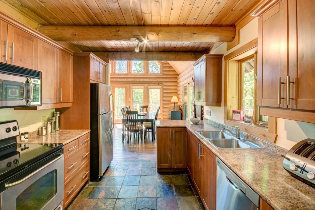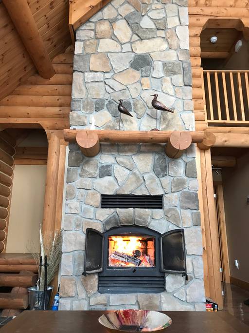 Blueberry Lake Resort welcomes you in this beautiful log cabin with its cathedral ceilings its large floor-to-ceiling windows, on 3 floors for up to 16 guests