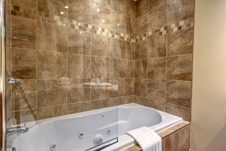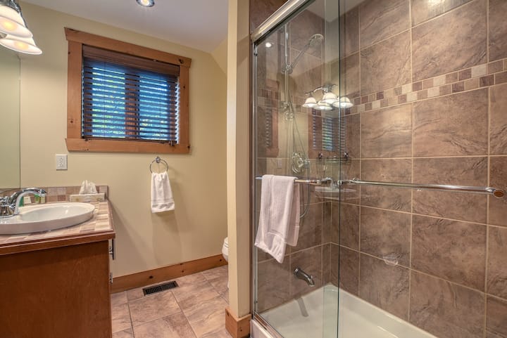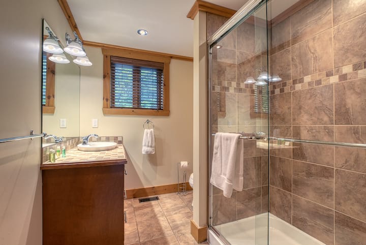 Sit in front of the remarkable stone fireplace and enjoy the views through the panoramic windows after a long day of winter activities, unwind in the hot tub or enjoy a game of pool in the downstairs living area.
