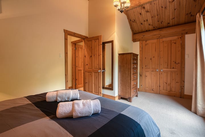 The chalets perfect location with a large, open terrain allows to have plenty of outside games for children and adults & offering you many activities from its doorstep, such as: extensive walking trails, mountain biking, water activities in Blueberry Lake (5 minutes walking distance). At winter time: cross-country skiing, figure skating, slide for kids, and snowshoeing. (Consult the trail map included in the photos).