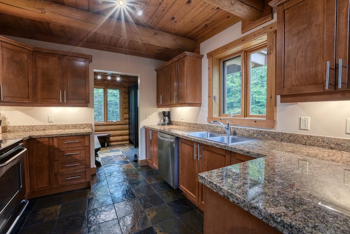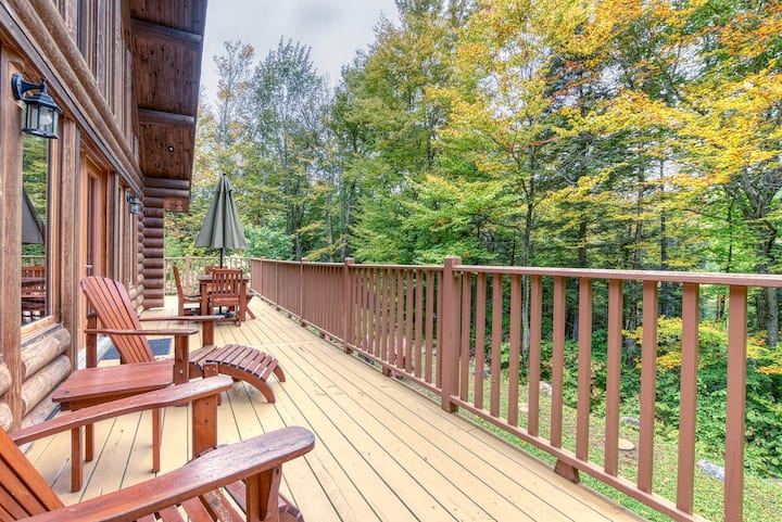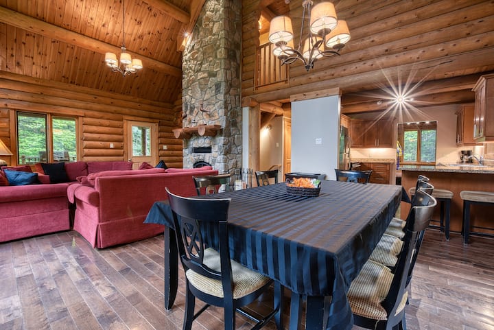 Luxurious 5-bedrooms, 2400 square feet log cabin located in the Laurentians just 25 minutes from Village Mont Tremblant, under 2 hours from Montreal or Ottawa and Gatineau. This spacious and beautiful log cabin boasts cathedral ceilings in the main living area and is located at Blueberry Lake Resort.