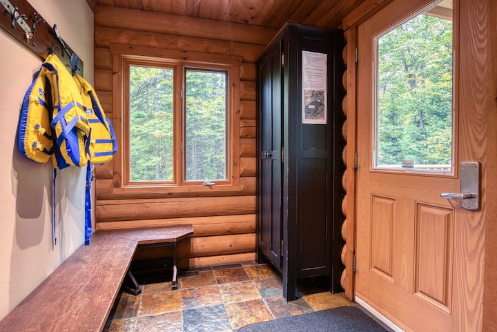 locationchaletsboisrond welcomes you in this beautiful waterfront log cabin with its cathedral ceilings its large floor-to-ceiling windows, on 3 floors for up to 14 guests