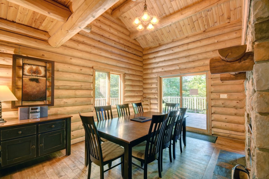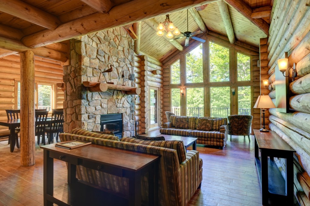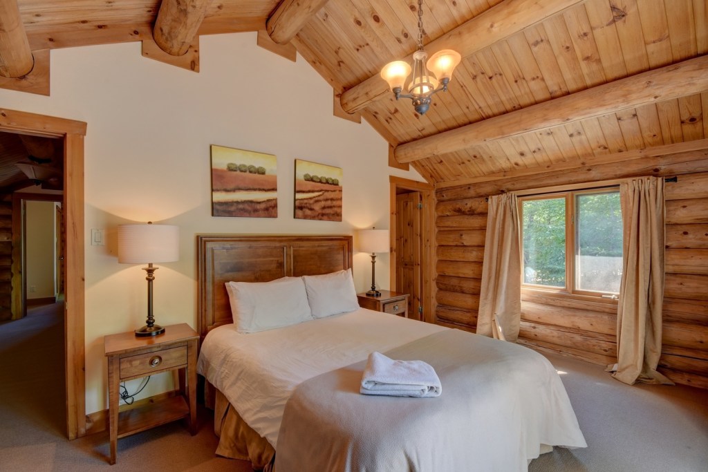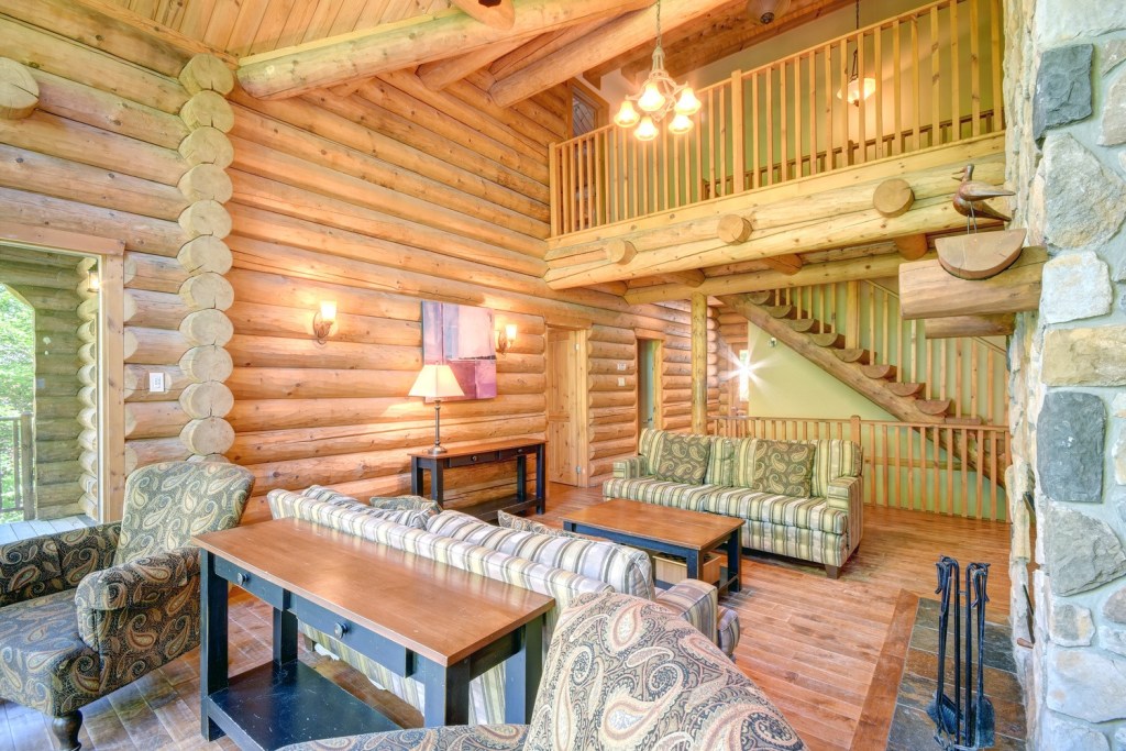 Chalet Nour is a beautiful cabin-chic home where luxurious furnishings match the exquisite architecture. Curl up in front of the two-sided stone fireplace in the log living room, play pool in the game room, and sink into the private hot tub. This beautifully landscaped chalet is a house made of 3400 square feet of log wood, with its cathedral ceilings its large windows from the floor to the ceiling will provide you with natural daylight. This is a truly inspiring safe place with kids so you too can enjoy your family vacation or just relax!