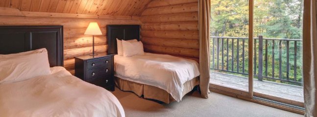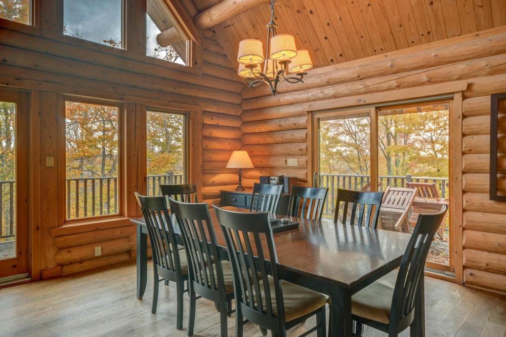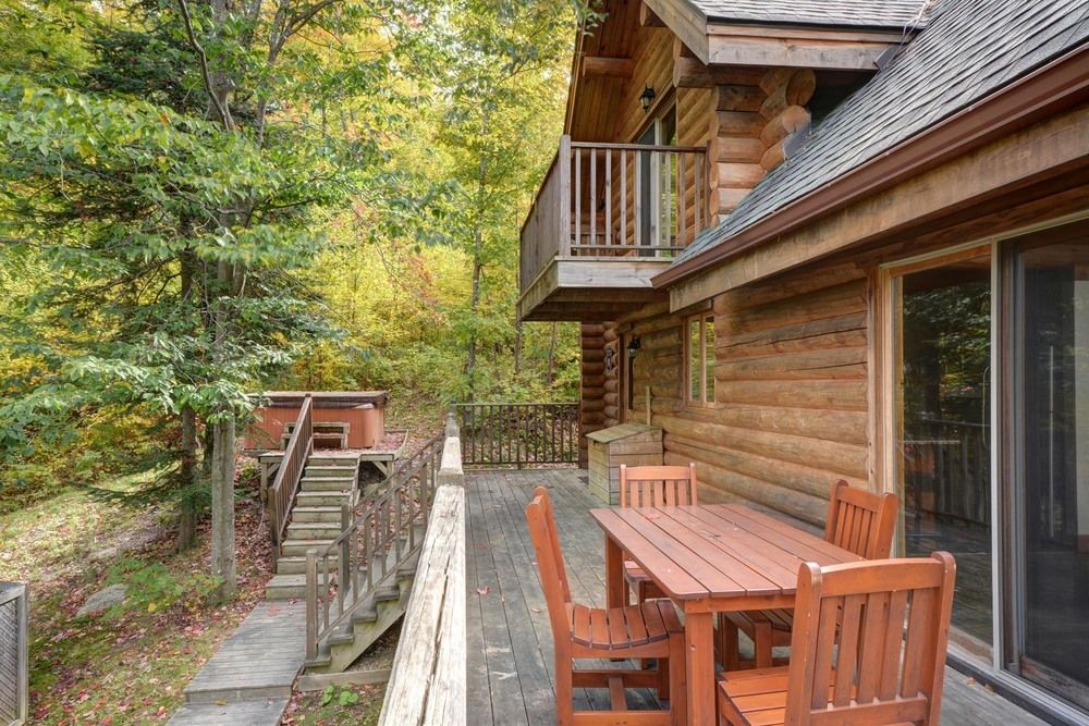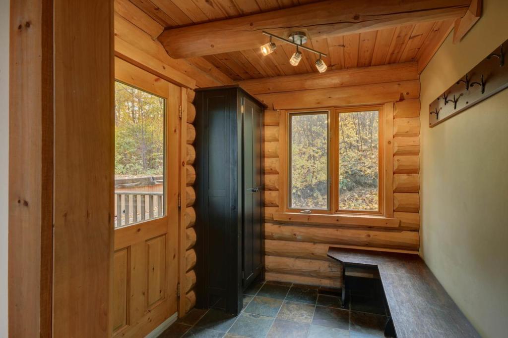 This beautifully landscaped cottage is a home made of round wood, with its cathedral ceilings its large floor-to-ceiling windows will provide you with natural daylight.