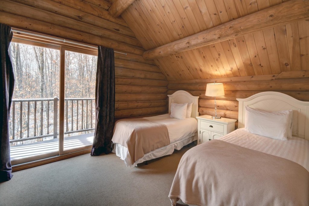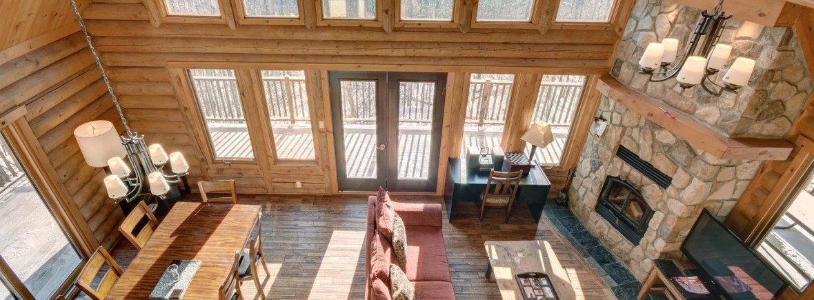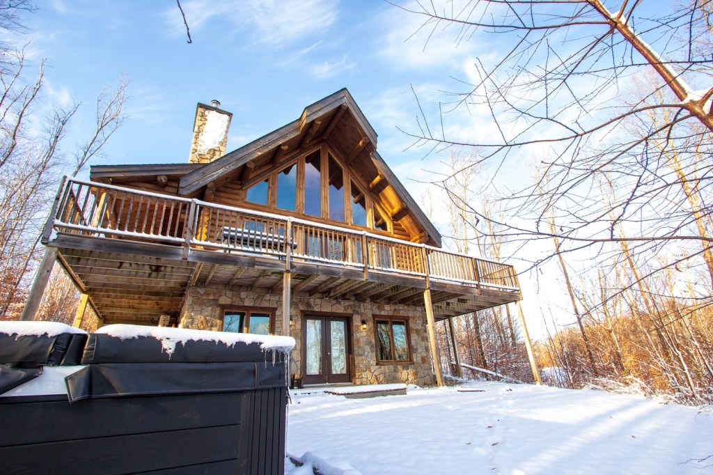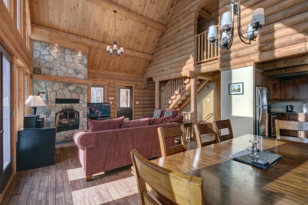 Blueberry Lake Resort offers you Chalet Zeina, a 2,400 sq. ft., 3 story log home with 4 bedrooms and 3 bathrooms. The charming cottage features a pool table and private hot tub, wrap around deck with lounge chairs, wi-fi and BBQ. Residents and vacationers alike will enjoy warm summer breezes, the magnificent color of the fall palette, the spectacle of spring flowers, skiing in the winter at Tremblant the Eastern North America’s highest mountain peak.